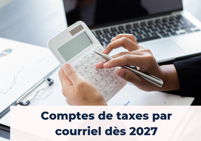 À compter de 2027, vous pourrez recevoir votre compte de taxes par courriel plutôt que par la poste, si vous le souhaitez. 👉 Pour vous inscrire, remplissez le formulaire en ligne : FormulaireAccordTaxeCourriel